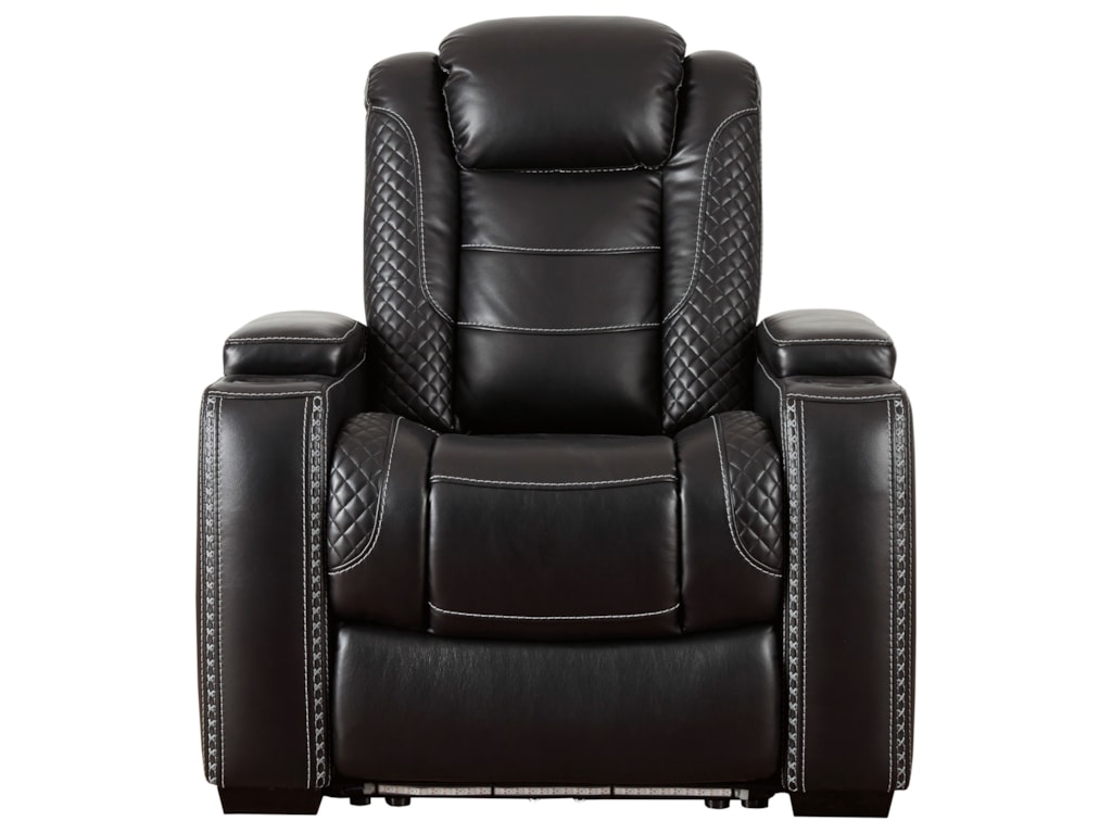 Signature Design By Ashley Party Time Faux Leather Power Recliner With Adjustable Headrest Theater Lighting Royal Furniture Recliners